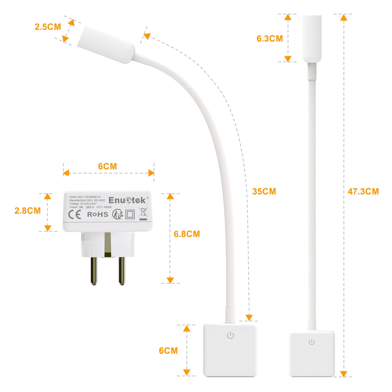 Flexible Reading LightLength 35CM flexible swing arm gooseneck can be easily adjusted to illuminate demanded lighting direction and lighting area, very convenient for table working and bedside reading