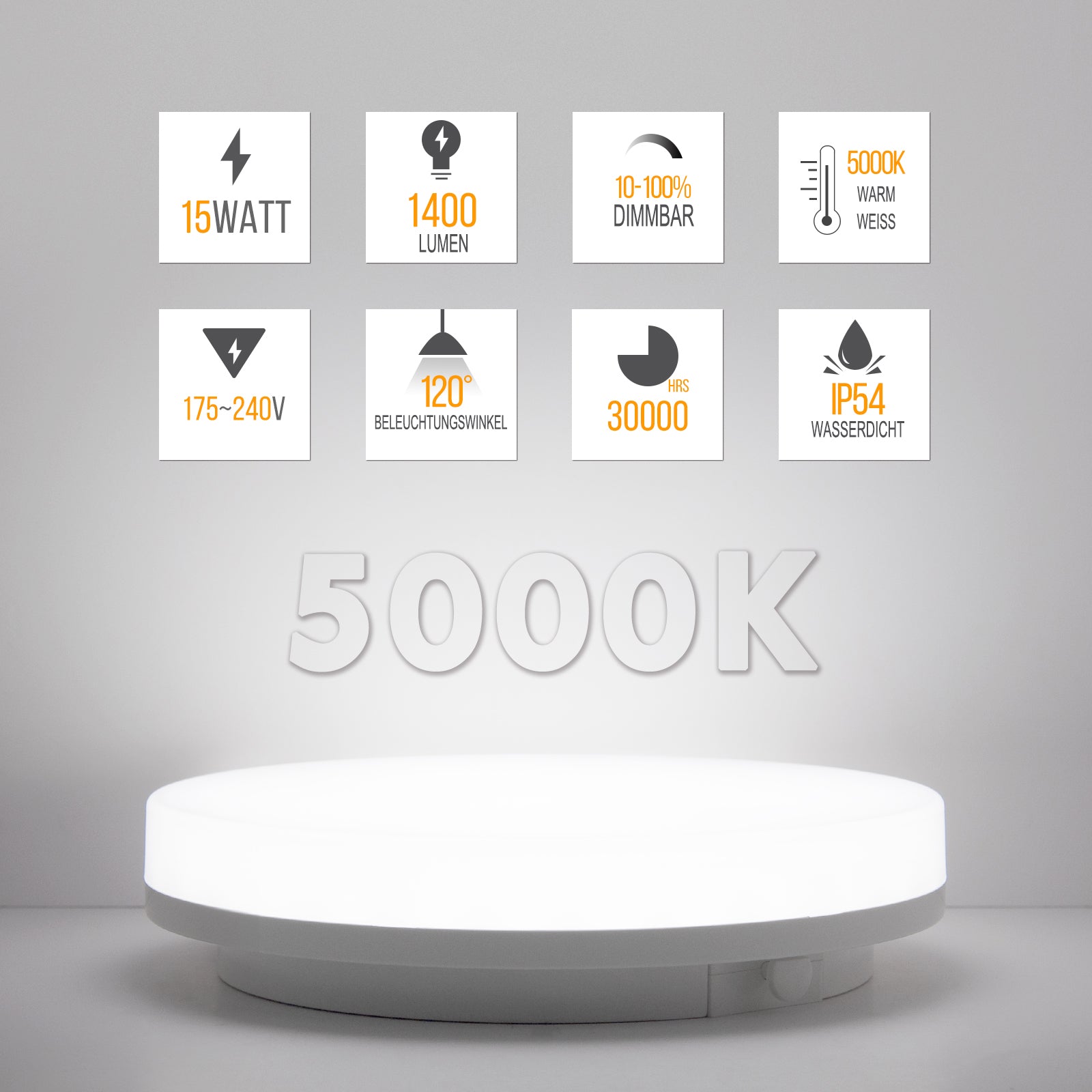 【White Ceiling Lamp】Pure white flameproof PC plastic housing, dampproof design, ideal ceiling lighting for white color ceiling of living room, kitchen or bathroom. Hard plastic lamp shade can avoid breakage