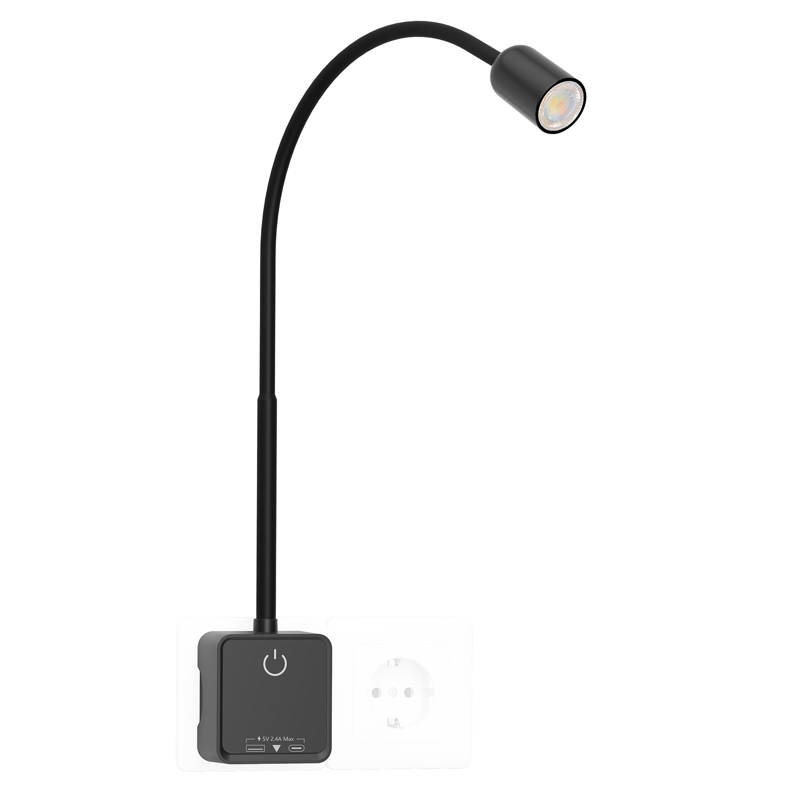 【USB Output Charging Function】On the bottom of the lamp base, the LED reading light is integrated with standard USB-A and USB-C output charging ports. The total output current is 5V maximum 2.4A as stablely charging for mobile phones, pads or other electronic equipment. PRINCEWAY LED wall reading light with power plug is ideal lighting accessory for bedroom, living room or study room