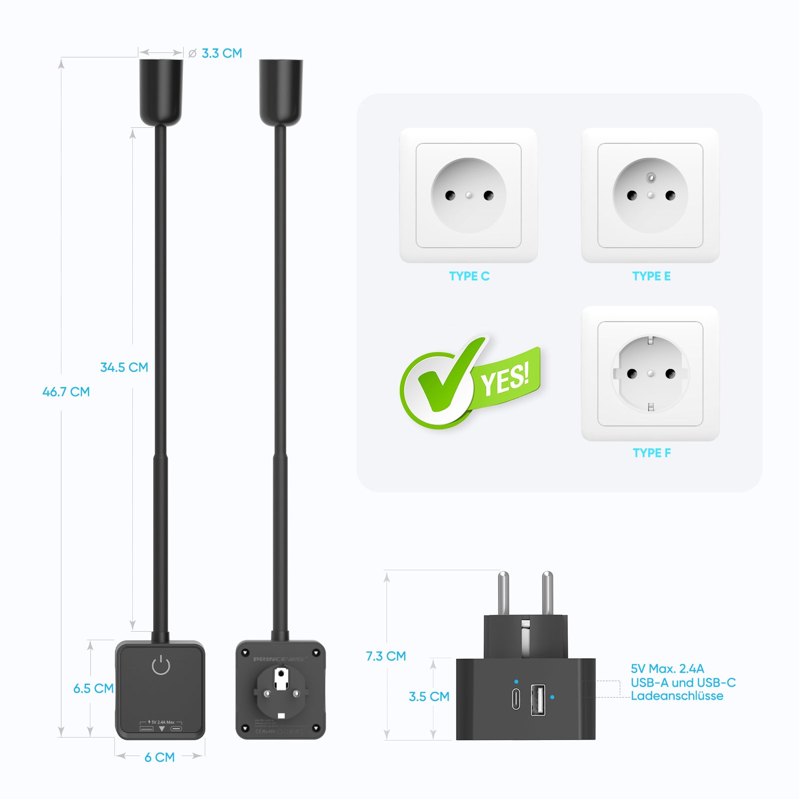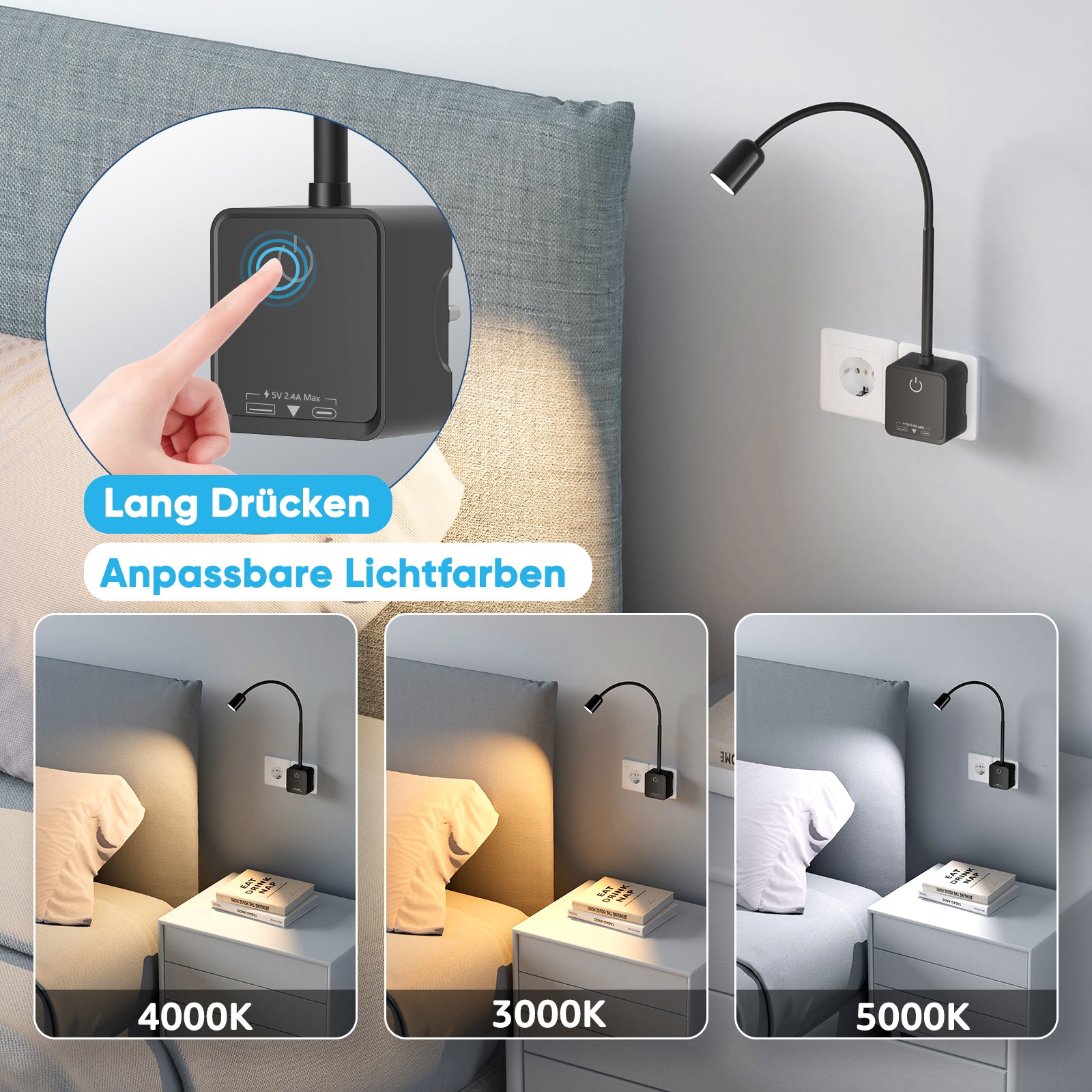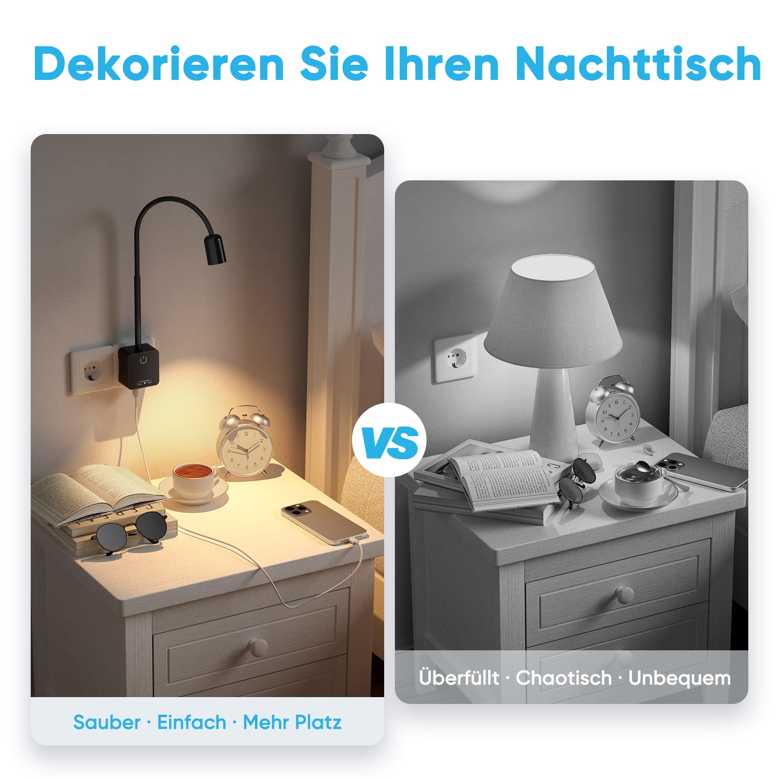 【Innovative Reading Light】The innovative design of LED reading light and standard European power plug are compactly combined together. The lamp base with power plug is compatible with all standard Type C/ Type E/ Type F power outet sockets in the wall or on the desktop. PRINCEWAY plug in reading lights can replace traditional desk lamps to save much more space on the bedside table in bedroom